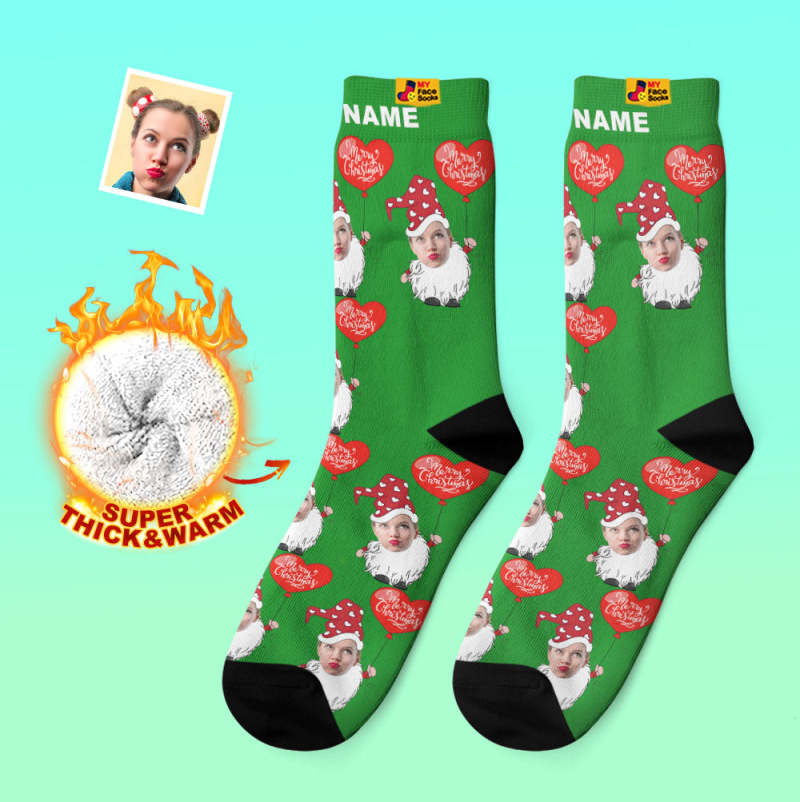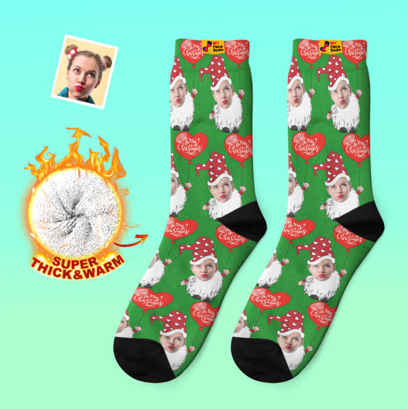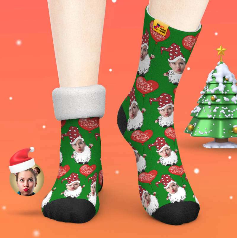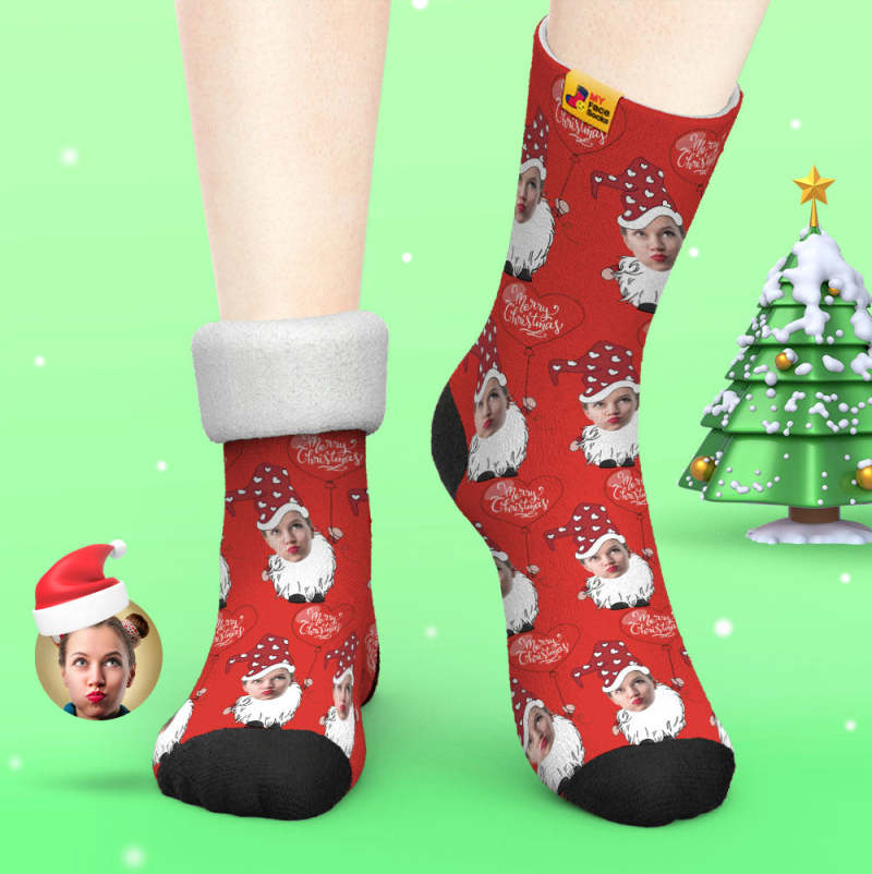 Custom Thick Socks Photo Autumn Winter Warm Socks Christmas Gnome With Heart Shaped Balloon Christmas Socks