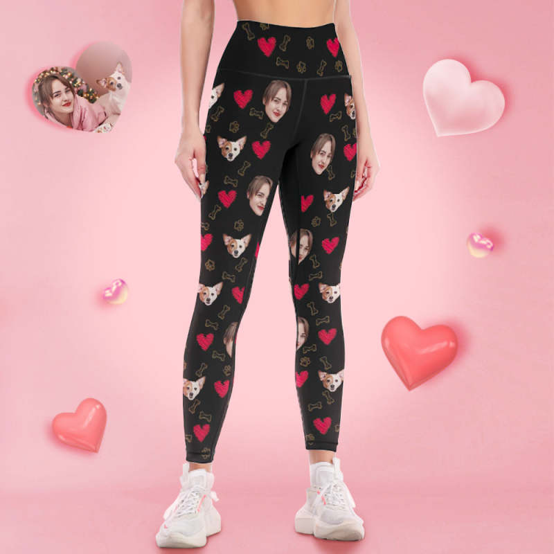 Custom Woman's Face Leggings Yoga Pants - I Love My Pet Dog