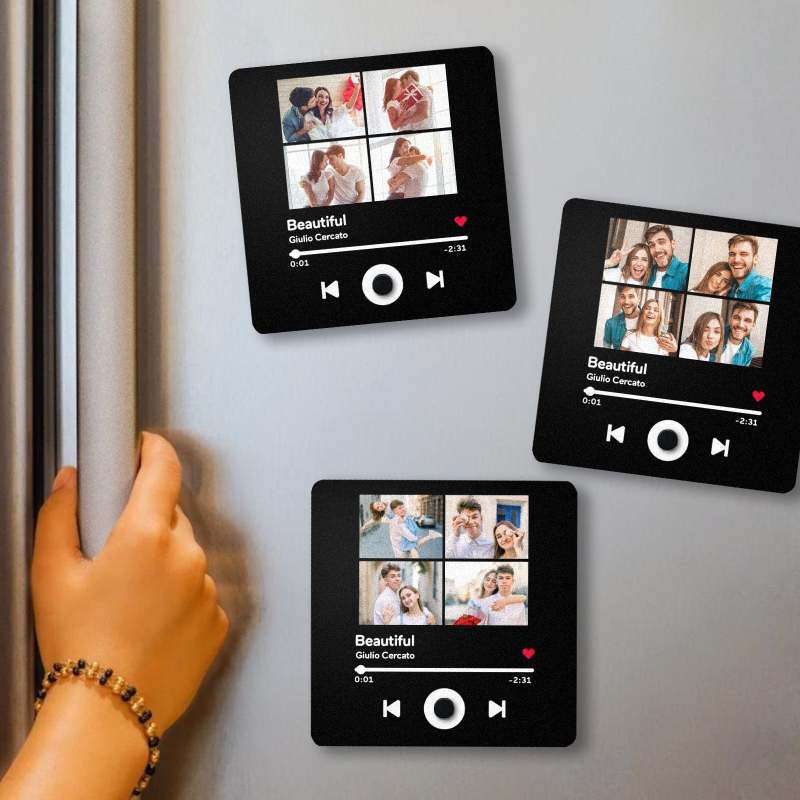 Customized Romantic Singing Refrigerator Magnet - The Best Gift Bring your favorite music to life with our Customized Album Fridge Magnet! This innovative magnet is more than just a decorative piece; it's a functional, interactive device that lets you play your favorite songs directly from your fridge. Whether you want to listen to a relaxing playlist while cooking or enjoy your favorite music while grabbing a snack, this fridge magnet makes it all possible.
