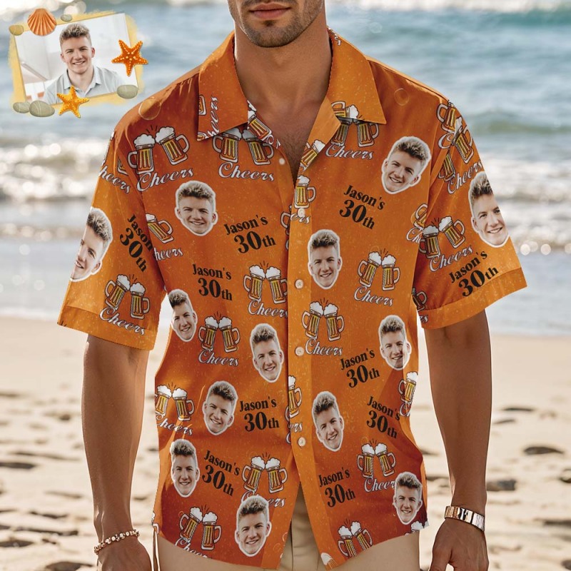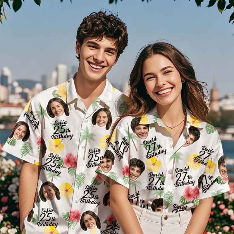 Personalized Birthday Couple Hawaiian Shirt Custom Face Name Summer Birthday Party Beeer Shirt Aloha Birthday Hawaiian Shirt Birthday Gift