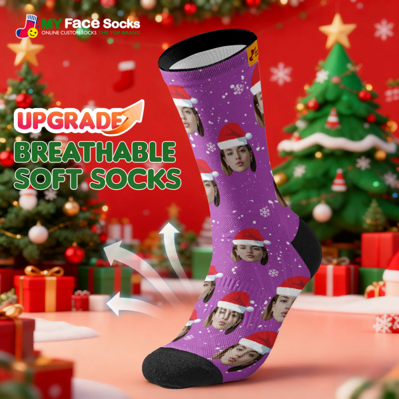 Personalized Christmas Socks Black SantaPhoto Socks Custom Christmas Socks Gift for Family Couple