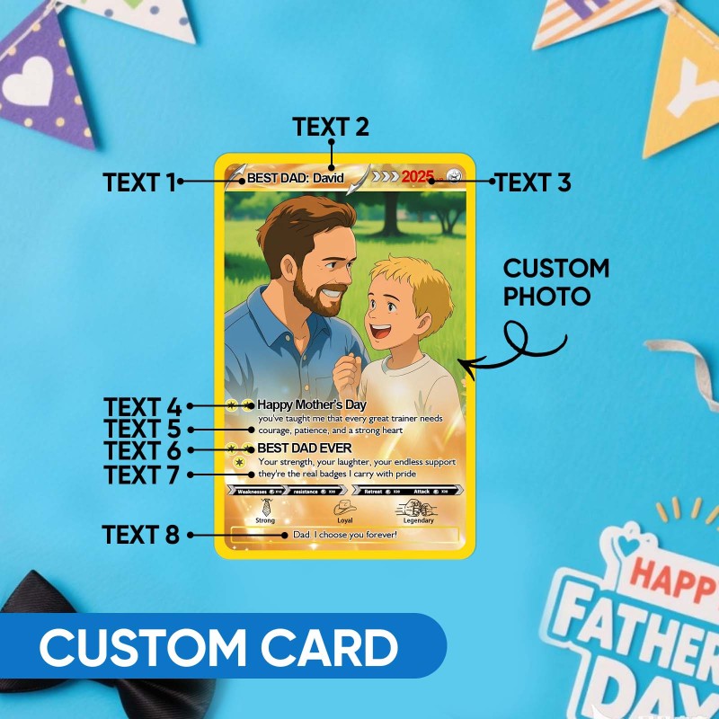 Personalized Father's Day Pokemon Card, Custom Poke Photo Cards, Gifts for Gamer Dad, Father's Day Gift, Custom PokeTrainer Card