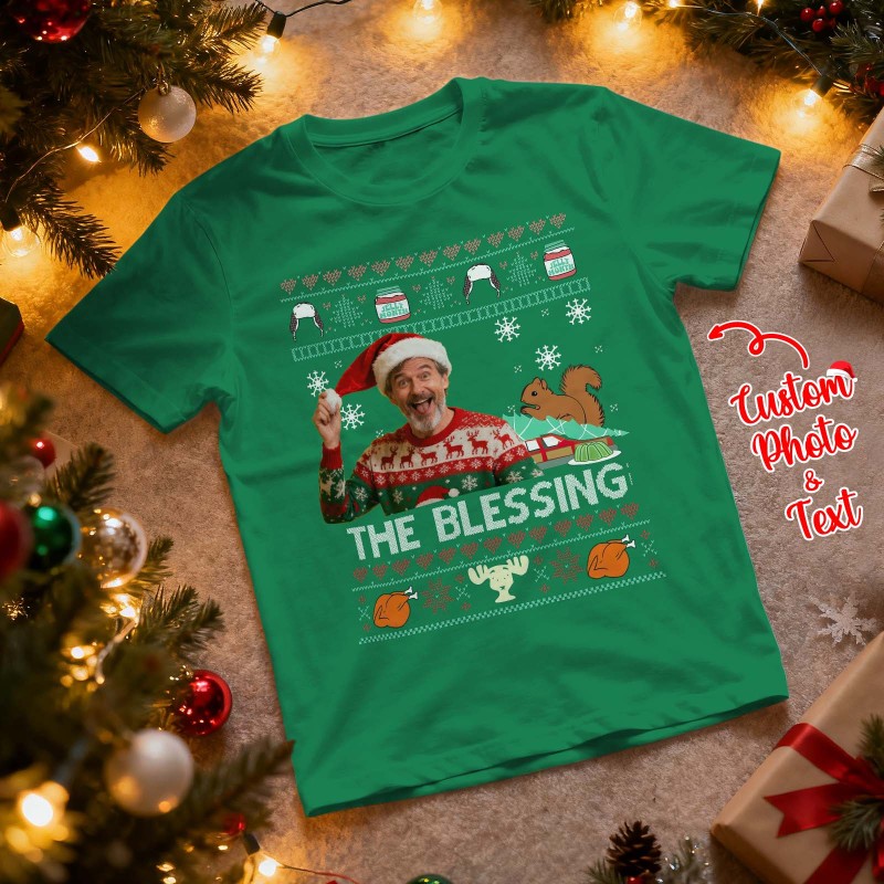Personalized Photo Tshirt Custom Photo Text T Shirt Gift Idea Christmas Gift For Family Friend Funny Santa Gift