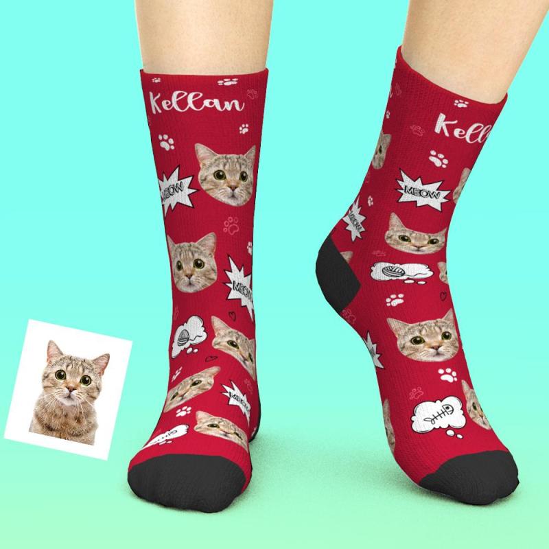 Printed In AU Custom Face Socks Add Pictures and Name My Face Socks Cat Meow