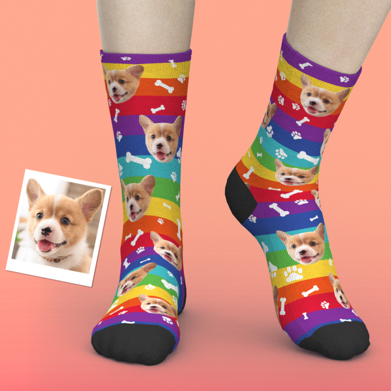 Custom Rainbow Socks Dog With Your Text - MyFaceSocks Printed In AU Custom Face Socks Add Pictures Socks Custom Rainbow Socks Dog With Your Text  - MyFaceSocks Custom Rainbow Socks Dog With Your Text  - MyFaceSocks