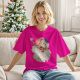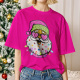 Santa with Sunglasses Funky Tee Cute Christmas Shirt Lights Pink Coquette bow