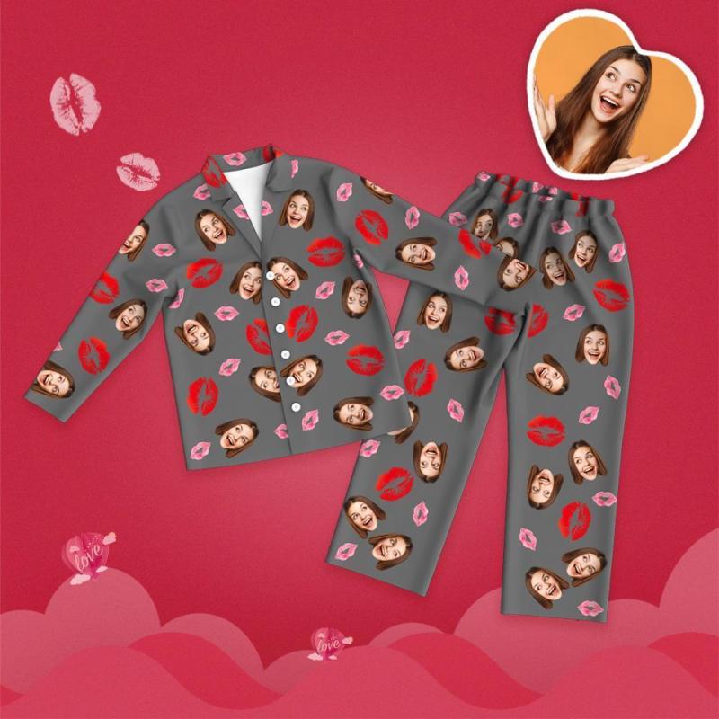 Custom Face Pyjamas Set Lip Printed Long Sleeve For Lover Gifts